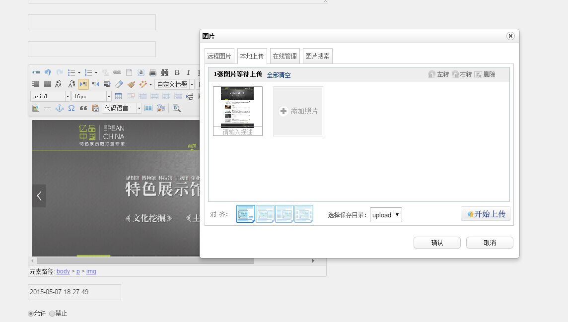 請問下添加一篇文章插入圖片的時候上傳成功圖片會沒有原來的那么大,要怎么弄呀,就是比如我上傳前的圖片是800*900的尺寸,上傳成功后變成了300*500的尺寸了。要在哪里改啊。