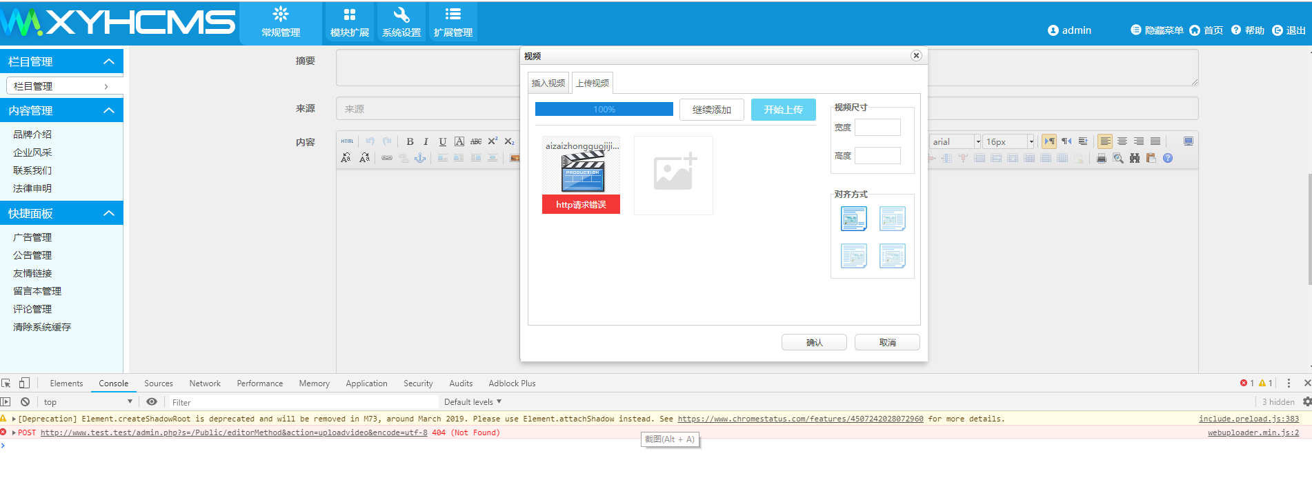上傳視頻提示:http請求錯(cuò)誤