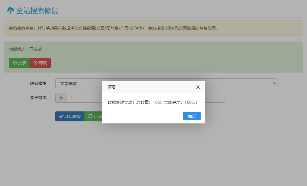 針對手動導(dǎo)入數(shù)據(jù)庫的文檔數(shù)據(jù)(文章/圖片集/產(chǎn)品/軟件等),全站搜索(slist標(biāo)簽)無數(shù)據(jù)的修復(fù)使用。